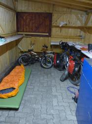 Insgesamt fahre ich heute nur 70 Kilometer. Das ist nicht so schlimm. Schlimm ist, dass ich von den 70 ganze 20 zu viel gefahren bin. Ich bin einfach dem schönen Radweg gefolgt, bis ich an der Murfähre Weitersfeld angekommen bin. Allerdings eine Stunde nach der letzten Fahrt, die um 18 Uhr stattfand. So bin ich wieder 10 km zurückgefahren nach Spielfeld. Dort entschließe ich mich, heute nicht mehr über die vor die nahe Grenze zu Slowenien zu fahren. Meine Unterkunft muss ich also in Spielfeld suchen. So suche ich erst mal die Waschmöglichkeit am Kreisverkehr auf, um dann ein wenig in dem Dorf, das anscheinend mehr Straßen und Abbiegungen als Häuser hat, zu durchfahren. Schließlich fahre ich vorbei am Tennisplatz zum Sportplatz, wo ich mir aus Erfahrung etwas Hoffnung auf eine Übernachtungsmöglichkeit mache. Auf diesem ist jetzt der Hundeverein aktiv, der Fußballclub wurde schon vor einigen Jahren aufgelöst. Ich frage nach, ob ich unter dem überdachten Hinterteil des Gebäudes schlafen könne, bekomme dann sogar die Hütte angeboten. Außerdem habe ich einige sehr nette Gespräche.