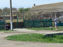 Ich habe, egal in welche Richtung ich fahre, Seiten- oder Gegenwind. So wird das also nichts mit dem Vorwärtskommen. Eigentlich bin ich davon ausgegangen, bei der Fahrt Richtung Süden Windunterstützung zu bekommen, das ist aber nur für eine Viertelstunde so. Die Stadt Bilhorod-Dnistrowskyj streife ich nur und fahre direkt in den Süden über einige Dörfer. Aber nur, weil ich mich verfahre. Dies bringt einen großen Umweg, sehr schlechten Straßenbelag und vor allem Seitenwind mit sich auf dem Weg dem Meer entlang. Es gibt aber auch nette Begegnungen. So zum Beispiel im Dorf Bilenke, wo ich in Kontakt mit zwei älteren Herren (gut 70) komme. Sie unterhalten sich mit mir auf Russisch. Er meint, und das kann ich auch auf Russisch verstehen, dass das Nachbardorf eine deutsche Siedlung sei. Er selbst ist wohl moldawischer Abstammung, denn er sagt mir zum Abschied „Gute Reise“. Die Landschaft „Bessarabien“, zu der diese Gegend gehört, ist also auch ein Vielvölkergemisch (so stammt der frühere Bundespräsident Köhler von hier). Ich frage ihn zwei Mal, ob ich ein Foto ihm und seinem Kollegen (und der Lenin-Statue) machen könne. Er lehnt aber ab und erwähnt dabei den Begriff „Internet“. Ich weiss zwar nicht, was er dadurch zu befürchten hat, kann seine Ablehnung aber dennoch verstehen. Ausserdem treffe ich eine ukrainische Radlergruppe von 42 Personen, die auf dem Weg nach Kiew sind. Sie sind gut bepackt und gemischten Alters.