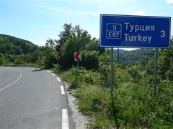Auf dieser Strecke treffe ich ca 10-15 Rennradfahrer und Kurzstreckenausflügler. Sehr nett, denn alle grüßen bzw. grüßen zurück. Ein Gegensatz zu meinen bisherigen Erfahrungen mit Rennfahrern. Die erste Hälfte der Fahrt geht fast nur bergauf, wegen Rückenwind aber sehr flott. Danach geht es nur noch hoch und runter. Nach Malko Turnovo, dem letzten Dorf Bulgariens vor der Grenze, hört es damit auf. Ab hier geht es nur noch bergauf, sogar ziemlich steil. Wenigstens ist es interessant. Denn nach jeder Kurve sieht man höchstens 200 Meter, dann kommt schon die nächste Kurve. Und die Landschaft ist abwechslungsreich. Beim ersten Berg hatte ich eine Durchschnittsgeschwindigkeit von 20,5 km/h, an der Grenze sind es nur noch 17,5.