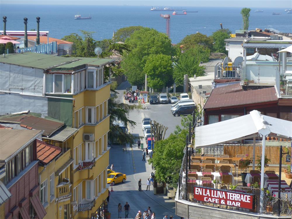Am Morgen gehe ich, wie von meinen Eltern empfohlen, auf die Terrasse des Hotels Seven Hills, da man von hier aus den besten Blick auf die Blaue Moschee und die Hagia Sofia hat.