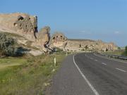Ich erreiche Kappadokien und mir wird klar, dass ich heute endlich – wenn auch knapp – vor der Dunkelheit ankommen werde und mein Zelt auf dem gleichen Platz in Göreme wie 2007 aufbauen kann. So fahre ich kurz vor Gülşehir nach links ab, um nicht die gleiche Strecke wie damals erneut fahren zu müssen. Allerdings kommt mir da zuerst die Straße, die zwar eben, wegen dem schlechten Teer aber sehr holprig ist, und zweitens der heftige Gegenwind in die Quere.