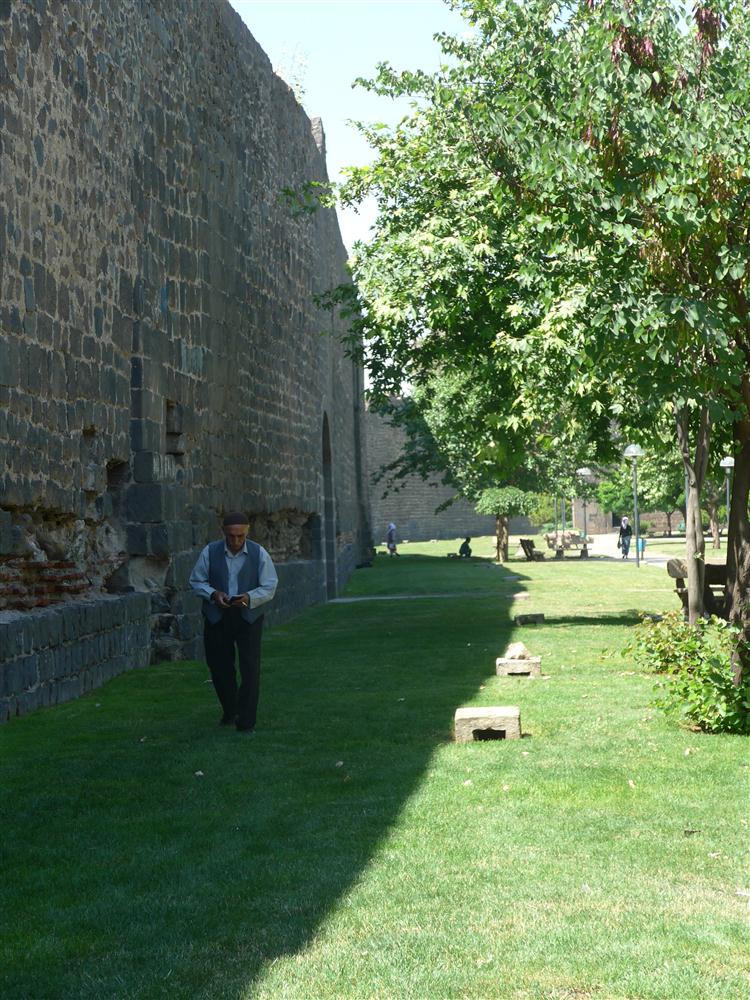 Am frühen Morgen überlege ich mir noch, eine weitere Nacht in Diyarbakır zu bleiben. Doch das empfohlene Ausgehviertel Ofis macht durch die Bilder, die ich im Netz gefunden habe, optisch nicht viel her. Falls ich noch mal herkommen sollte, würde ich es aber sicher aufsuchen. So fahre ich durch die noch immer von der alten Stadtmauer umgebene Altstadt, die gar nicht besonders groß ist. An einem Tag kann man hier alles sehen und zwar gemütlich zu Fuß. Zuerst fahre ich aber zum speziell auf Touristen ausgerichteten Veloladen, den mir die Amerikanerinnen beim Frühstück empfohlen haben, der mir aber überhaupt nicht weiterhilft. So geht die Fahrt weiter in dieser gar nicht für Räder gemachten Stadt: es ist oft holprig, es gibt viele Einbahnstraßen und sehr viel Verkehr.