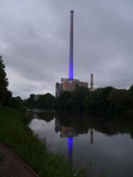 Direkt hinter der Brücke wird eine Bühne abgebaut. Ich gehe davon aus, dass hier gestern der Trauerakt für Helmut Kohl stattgefunden hat. Wie ich von hier aus weiterfahren soll, ist mir völlig unklar. Ich sehe keinen einzigen Wegweiser. Deshalb frage ich eine Frau (ca. 50), ob sie mir weiterhelfen könne, wie ich denn am Zentrum Straßburgs vorbei nach Schiltigheim kommen kann. Sie meint, ein Teil von der Strecke sei auch ihr Weg und sie könne mich begleiten. Was für ein Glück! Sie erzählt mir, sie komme gerade von einer Yoga-Vorführung auf der Brücke. Das größte Problem des Tages scheint gelöst zu sein. Wir kommen schnell vorwärts und der Weg ist genau richtig. Allerdings habe ich nicht damit gerechnet, dass ich in den Vororten Schiltigheim, Bischheim, Hoenheim und Souffelweyersheim praktisch an jeder der zahlreichen Ampeln länger warten muss. Es ist aber zu ertragen, denn der Weg ist schnurgerade und meine nächsten Ziele sind immer angeschrieben. Das erste mal muss ich mich wieder erkundigen, als ich nach Vendenheim will. Dort erklärt mir ein anderer Radfahrer (ca. 30), der in einem nahe gelegenen Hotel arbeitet, ich müsse einfach nur am Kanal entlangfahren, dieser würde mich bis nach Dettwiler führen. Was für eine einfache Lösung! Auf meiner Karte ist gar nicht erkennbar, dass die eingetragene Strecke einen Kanal darstellt.
